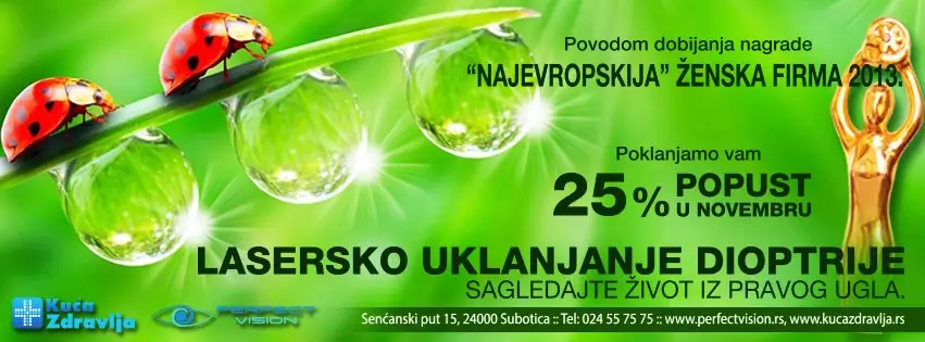 Tudatában annak, hogy milyen nehéz időkbenélünk, és hogy közelebb hozzuk Önt ehhez a lehetőséghez, örömmel kínálunk Önnek novemberi 25%-os kedvezményt, amivel akár 30 000 dinárt is megtakaríthat! Emellett minden Szabadkától több mint 200 km-re fekvő beteg számára ingyenes szállást biztosítunk a gyönyörű „Vila Majur” szállodában Kelebijában (www.vilamajur.com).